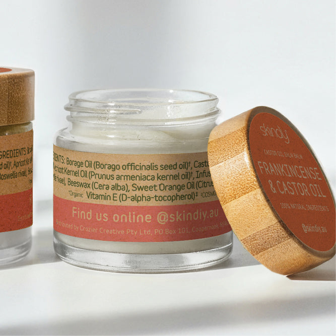 We slow-infuse frankincense resin for its traditional skin-rejuvenating qualities, adding a soft, earthy depth. Beeswax gives the balm structure and forms a breathable shield against moisture loss. A hint of sweet orange oil brings a subtle citrus lift, while vitamin E supports natural protection and nourishment.
